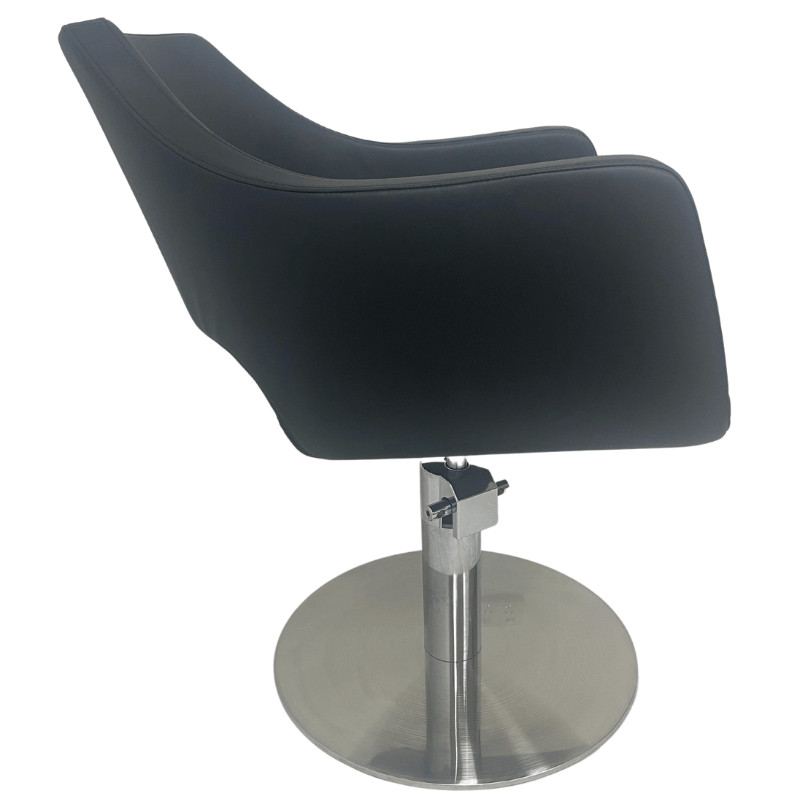 This styling chair has simplistic elements that are modern and carefree. The chair has soft cushioning allowing clients to sit comfortably. The high quality upholstery is ultra smooth and very easy to clean.