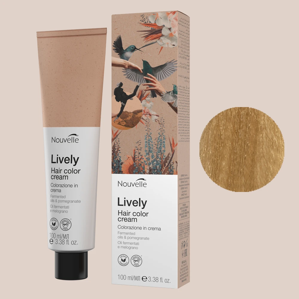 Colour in cream based on a highly protective natural conditioning complex that associated with pure colourings and specific ingredients like sweet almond oil and lotus flower extract, creates a delicate professional colouring, covering white hair perfectly, extremely luminous and long lasting. Dilution with Lively cream bleach Brilliant and Vibrant Colours. Stability with Time.