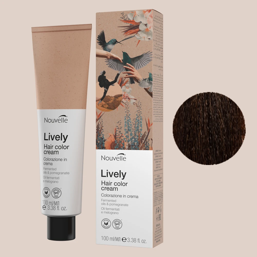 Colour in cream based on a highly protective natural conditioning complex that associated with pure colourings and specific ingredients like sweet almond oil and lotus flower extract, creates a delicate professional colouring, covering white hair perfectly, extremely luminous and long lasting. Dilution with Lively cream bleach Brilliant and Vibrant Colours. Stability with Time.