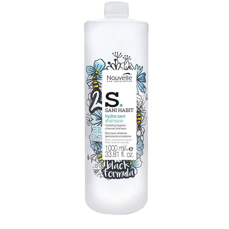 Hydrating, sanitizing charcoal shampoo, ideal for all hair types and for frequent use. Essential oils of cinnamon and eucalyptus, together with honey and charcoal, provide a deep-down purifying and cleansing action. The innovative soft, black texture creates a delightful sensory experience.