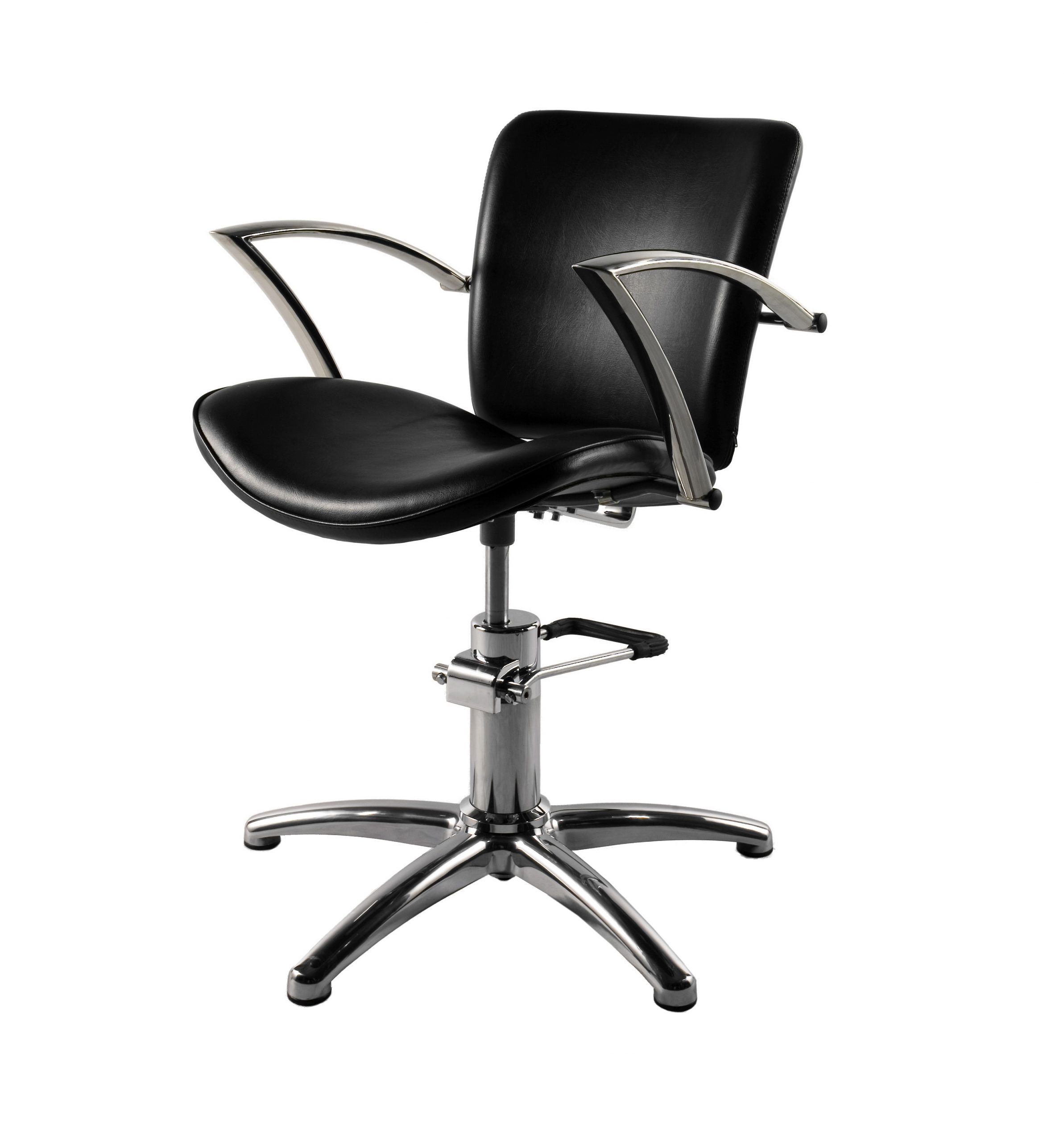 This chair features curved chrome armrests trailing towards the back and acts as support for the backrest. For best comfort, cushioning is made by high density foam that will maintain its shape for many years.